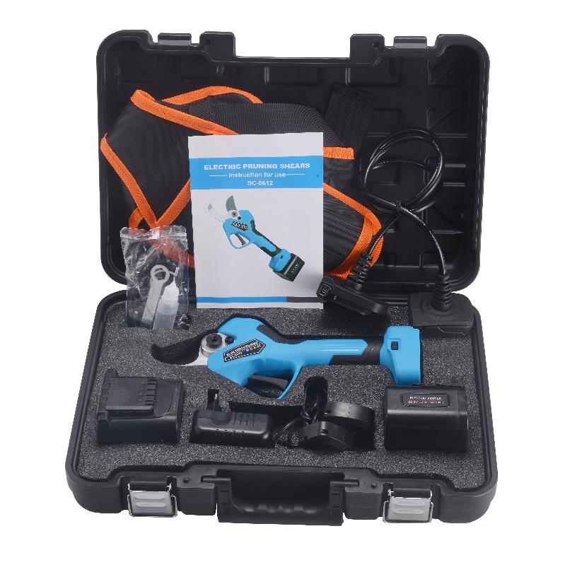 SC-8612 Profesyonel Akülü Ağaç Budama Makinası, ağız açıklığı 4,5 cm, torku 300Nm’dir. Piyasadaki en geniş ağız açıklığına, en güçlü kesme kuvvetine ve en iyi fonksiyona sahip akülü budama makasıdır. Diğer tanınmış Elektrikli Dal Makaslarıyla karşılaştırıldığında bu elektrikli budama makası, rekabetçi fiyata sahip yüksek kaliteli bir üründür.